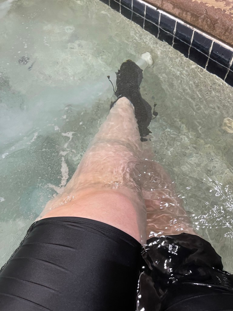 I dragged my Ulla Popkin Aquatard down to the hotel pool the last two nights for some water jogging and last times in the hot tub. No more submerging for quite some time. Quite sad about that actually – I’ll miss my ladies at my senior aqua fit class.
