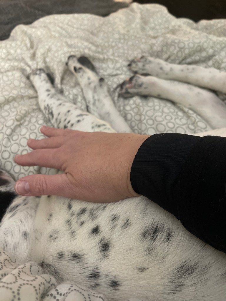 I’m able to to almost everything. I was driving pretty much right away. The thing I didn’t think of – trying to carry a bunch of solid things in my arms! OWWWW! Like holding several jars or too many things at the grocery store in my arms – they push into my tender arms and out comes the expletive! Very glad my babies aren’t babies, for once. I’m trying to avoid real heavily lifting but Jarvis the 50 lb short-legged lap dog will not be denied his rightful place next to me on the bed!