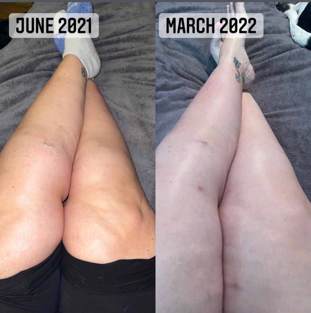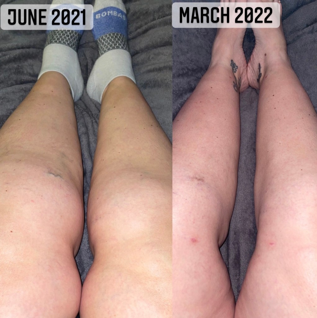 I need to do some proper full body comparison photos but in the mean time I took some tonight to compare with my pre-surgery legs from back in June 2021. Besides loosing my tan and gaining some scars I do see a difference! The thick, bumpy, orange peels are mostly gone!!